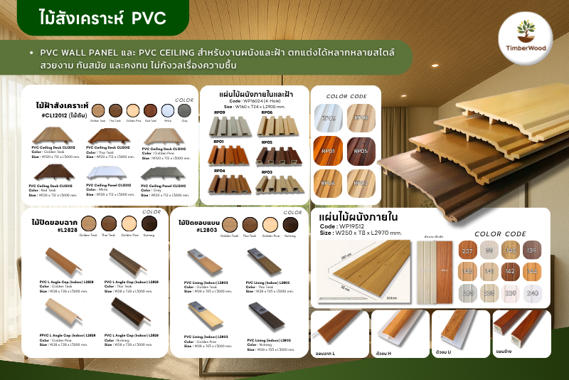 สินค้าแนะนำจากทิมเบอร์วู้ด: PVC Wall Panel และ PVC Ceiling สำหรับงานผนังและฝ้า ตกแต่งได้หลากหลายสไตล์ สวยงาม ทันสมัย และคงทน ไม่กังวลเรื่องความชื้น